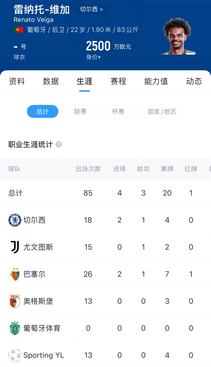 维加于2024年7月以1400万欧元转会至切尔西,合同签至2031年6月。今年冬季转会窗,他被租借至尤文图斯。上赛季共出战33场比赛,交出2球2助攻数据,目前德转身价为2500万欧元。